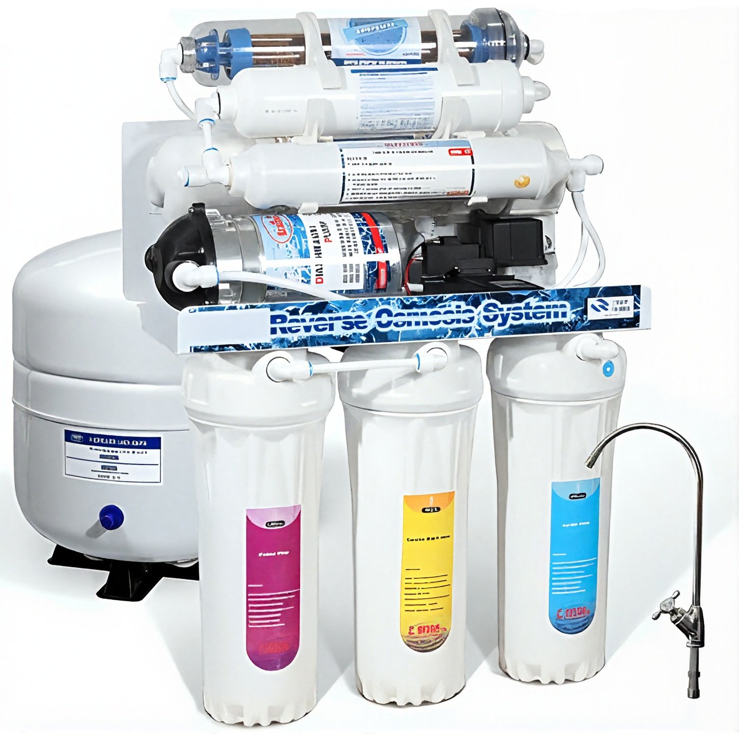 Atbulinės osmozės filtras 7-ių pakopų RO-14MB paskirtis – paruošti aukštos kokybės geriamą vandenį atbulinio osmoso metodu (plačiau apie atbulinio osmoso veikimą). Filtravimo sistemos našumas – iki 279 ltr/parą. Del mažo vandens našumo yra statomas papildomas bakelis, kuris prisipildo, kol vanduo nėra naudojamas.
